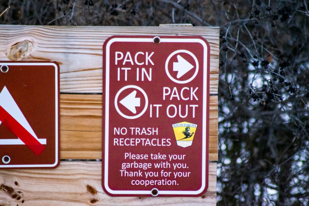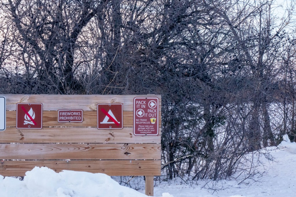A South Dakota State Park sign at Mina Lake’s main boat ramp on Friday, February 3,2023. This assignment was part of exploring aperture. Photo by Moriah Williams.