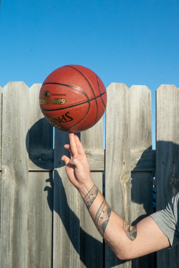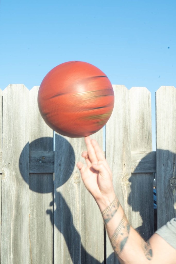 Lucas Williams spins a basketball on Sunday afternoon in Aberdeen, South Dakota. This assignment was done to demonstrate how changing shutter speed can capture faster movement of a subject. Photo by Moriah Williams.